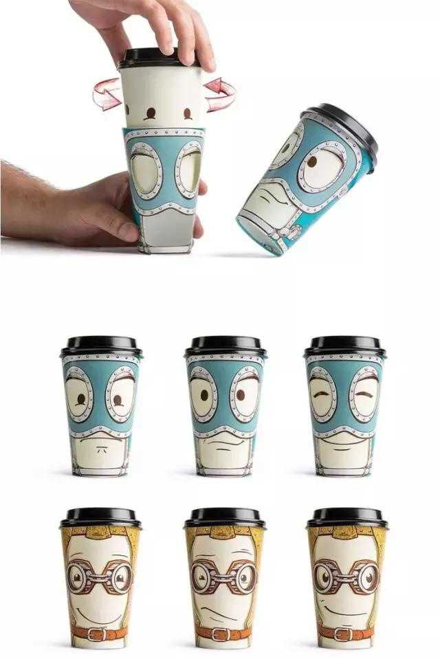 Cette tasse à café peut être personnalisée avec différentes expressions en faisant pivoter l'emballage. La source créative de cette tasse à café est l'espoir de changer l'humeur de la journée grâce à la tasse de café quotidienne. Après avoir bu du café, êtes-vous prêt à jeter la tasse ?